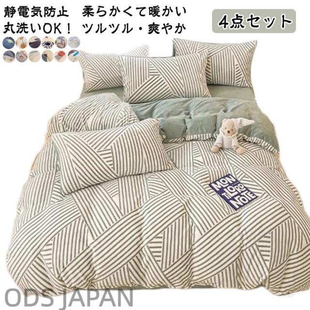 冬用 布団カバー 4点セット ダブル 掛け布団カバー 北欧 あったか マイクロファイバー 冬用 静電気防止 寝具カバーセット フラットシーツ 掛け布団カバー 枕カバー 洗い替え 肌に優しい 丸洗いOK 暖かい お洒落