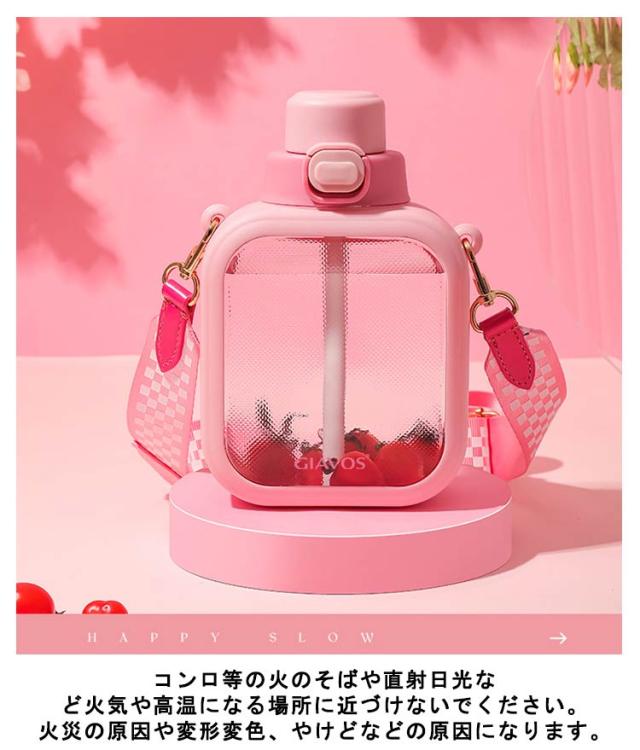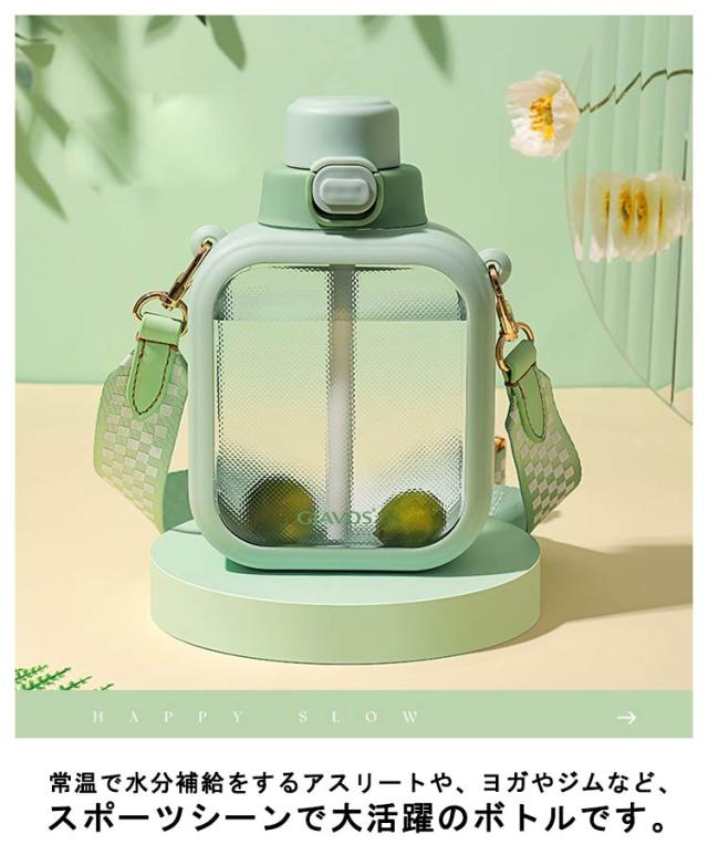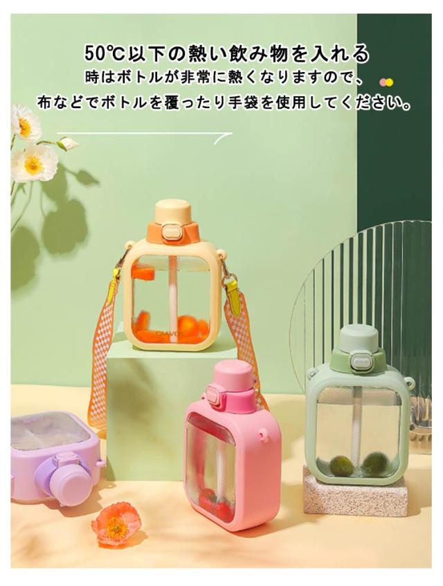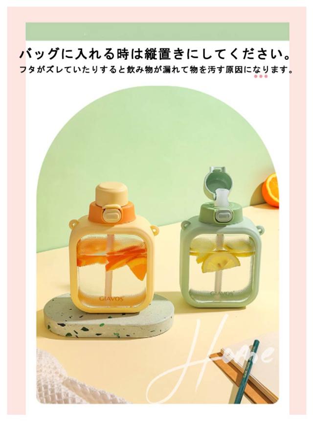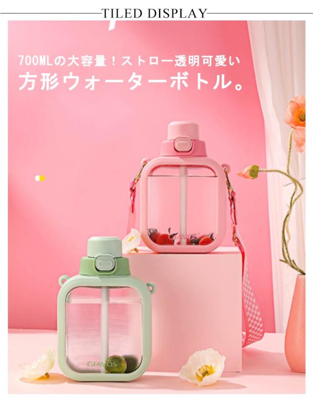 | 700mlの大容量!ストロー透明可愛い方形ウォーターボトル。 幅広く耐久性に優れるストラップ付属で、持ち運びや吊り下げが便利です。 ボルト自体も丈夫で軽く、長くお使いいただけます。 常温で水分補給をするアスリートや、ヨガやジムなど、スポーツシーンで大活躍のボトルです。 フタを閉める時にボトルを傾けたり揺らしたりしないでください。飲み物があふれ出たり、火傷や物が汚れる原因になります。 バッグに入れる時は縦置きにしてください。フタがズレていたりすると飲み物が漏れて物を汚す原因になります。 50℃以下の熱い飲み物を入れる時はボトルが非常に熱くなりますので、布などでボトルを覆ったり手袋を使用してください。 コンロ等の火のそばや直射日光など火気や高温になる場所に近づけないでください。火災の原因や変形変色、やけどなどの原因になります。 | |