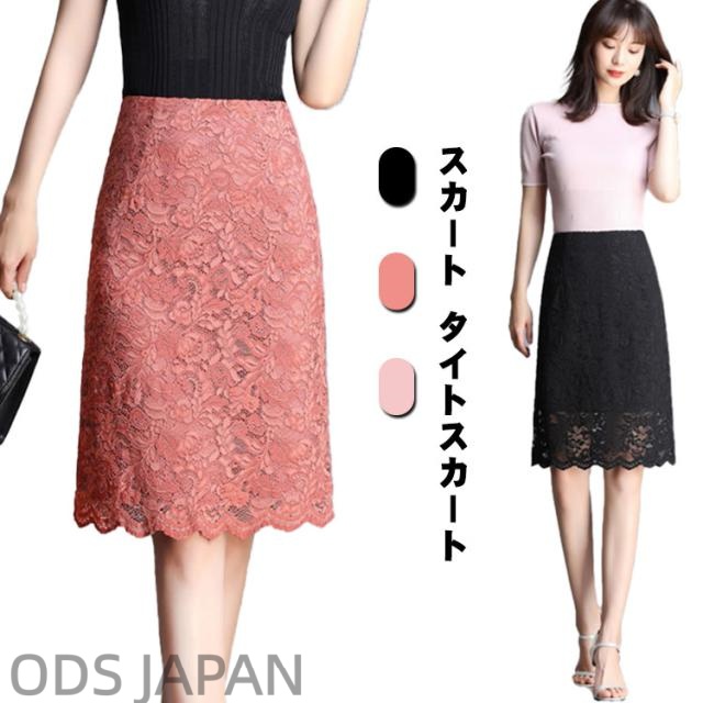 レーススカート 大きいサイズ スカラップレース XL 大人 タイトスカート M エレガント ゴム フェミニン タイト ウエストゴム L ブラック 2XL 3XL 4XL 5XL ライトピンク オフィス