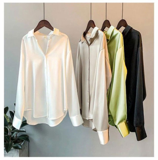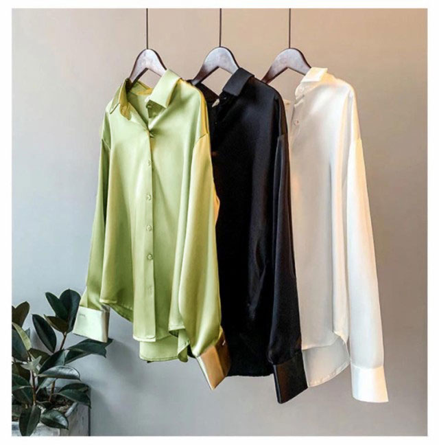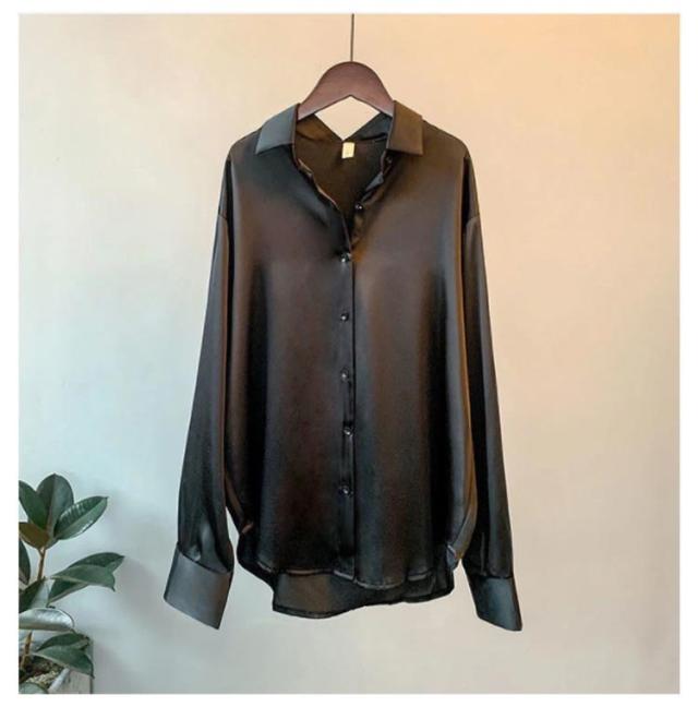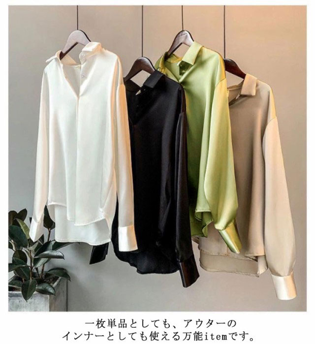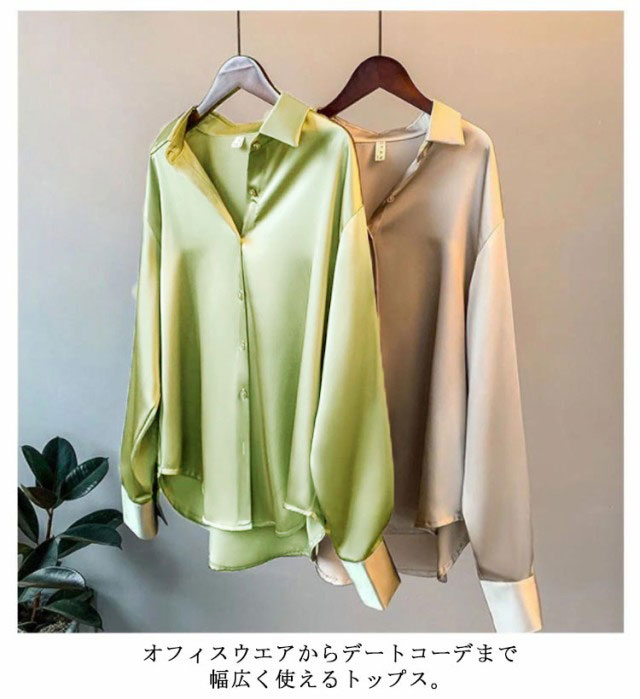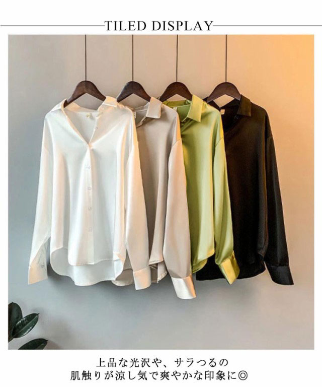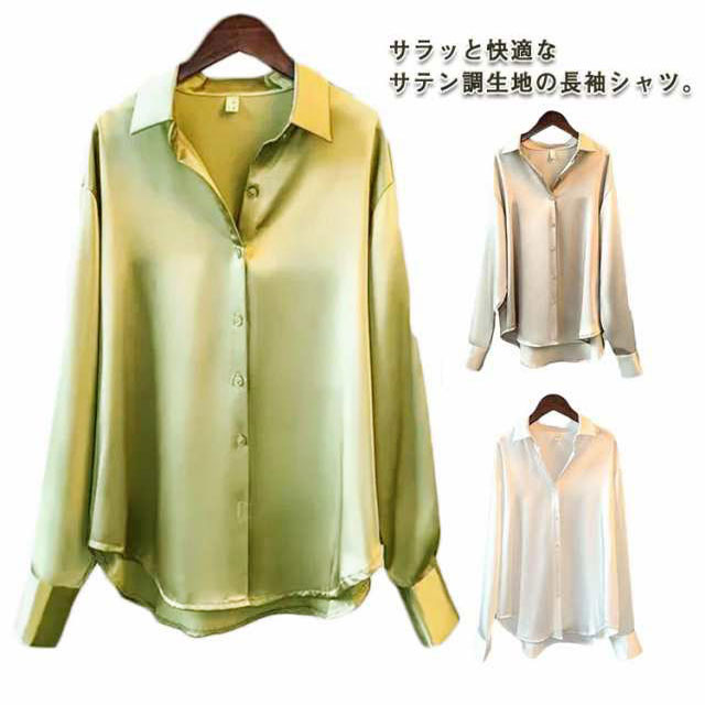 サテン調 トップス とろみ シフォン ブラウス シャツブラウス 長袖シャツ レディース シャツ ワイシャツ オフィス カジュアル シルクタッチ 長袖 シンプル きれいめ 春夏 夏 秋 長袖