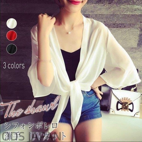 カーディガン シフォンボレロ カバーアップ ボレロ カーディガン シフォン 薄手 シースルー ビーチ リゾート 海外 水着の上 レディース UVカット夏