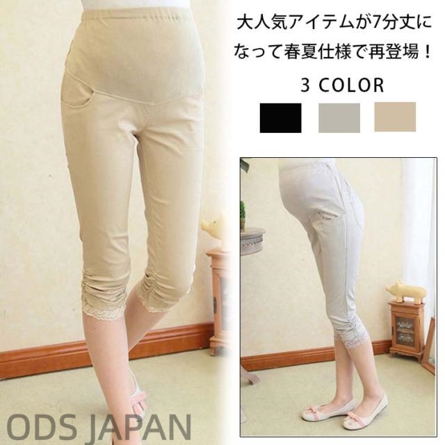 チノパンツ マタニティ パンツ クロップド スキニーパンツ スリムパンツ 裾レース 裾ギャザーパンツ 7分丈パンツ マタニティウェア