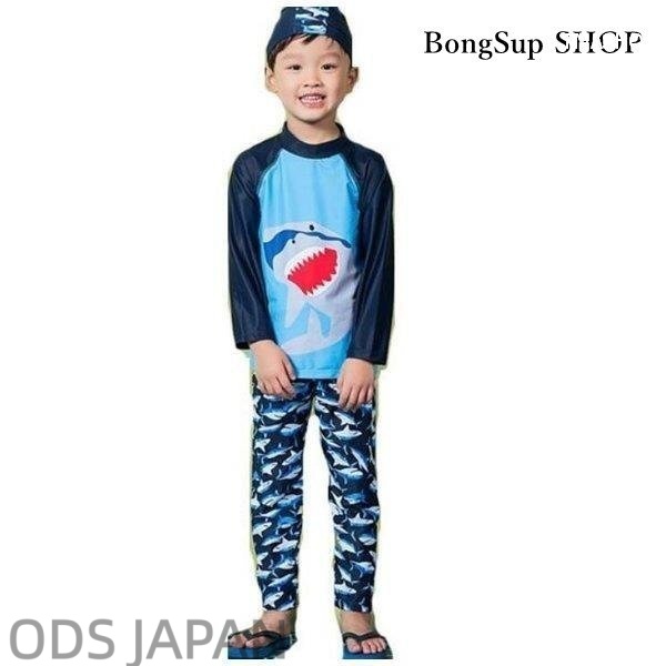 水着 3点セット 男の子 帽子付き サメプリント 長袖 速乾 日焼け止め 人気 子供服 ベビー水着 夏 キッズ水着 スイミング ジュニア 可愛い ビーチ 男児用