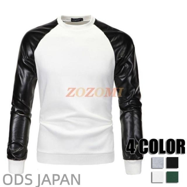 トレーナー メンズ プルオーバー 長袖 PU トレーナー メンズ カジュアルトレーナー 秋冬 プルオーバートレーナー 4色