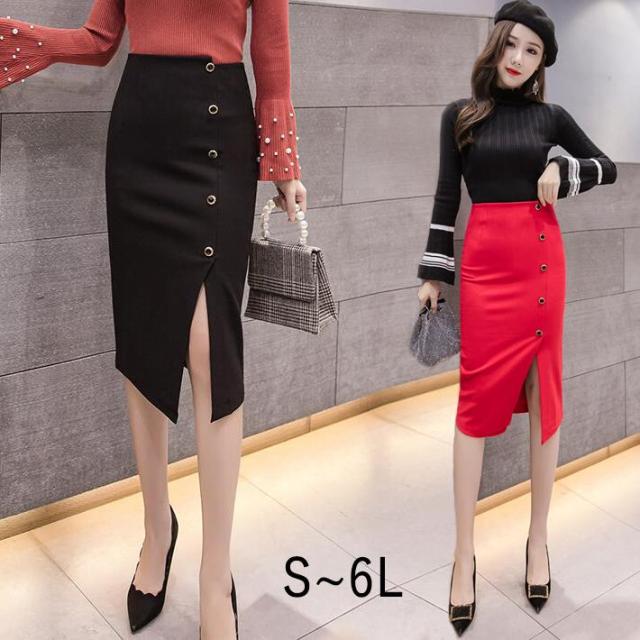 スカート タイトスカート ペンシルスカート ストレッチ ミディア丈 ひざ丈 ハイウエスト スリット 細見え 大きいサイズ カジュアル デート オフィス OL お出かけ S M L 2L 3L 4L 5L 6L