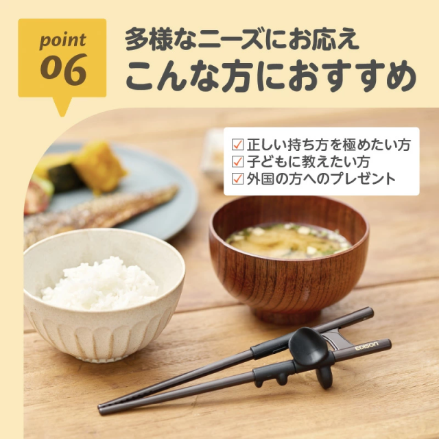 EDISON ラストステップ 大人用 右手用 矯正箸 トレーニング箸 エジソン箸 練習用箸 お箸練習 持ち方覚える箸 お箸入門 おはし大人用はし カトラリー フォークスプーン 躾箸 ブラック 黒
