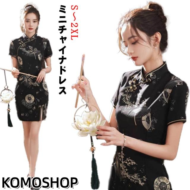 送料無料 チャイナドレス 半袖 中華風 ワンピース 演出 中華楽器 パーティー ドレス 女性用 ミニチャイナドレス ショート丈 チャイナ服 セクシー 中華ドレス 華流コスチューム タイト 膝丈 ハロウィン パーティー チャイナ舞台衣装 ブラック