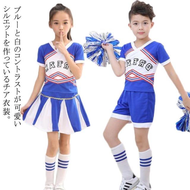 チアガール衣装 キッズチアガール 半袖 女の子 男の子 ユニフォーム コスプレ 発表会 ダンス 可愛い チア応援団 ハロウィン コスチュ?ム コスプレ衣装 応援ダンス パーティ