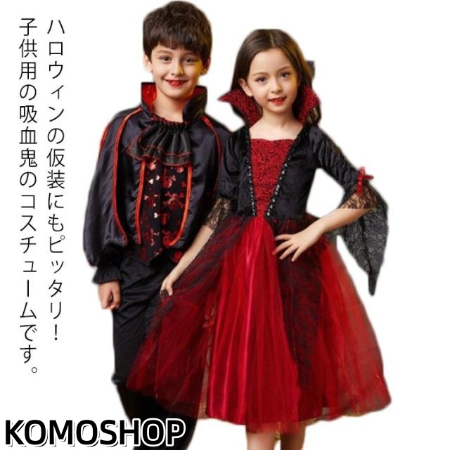 ハロウィン コスプレ 衣装 子供服 吸血鬼 ワンピース バンパイア ドラキュラ コスチューム ケープ風 女の子 男の子 ジュニア 悪魔 Halloween パーティー 仮装用 おばけ イベント 演出服 学園祭 文化祭 送料無料
