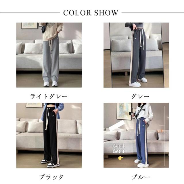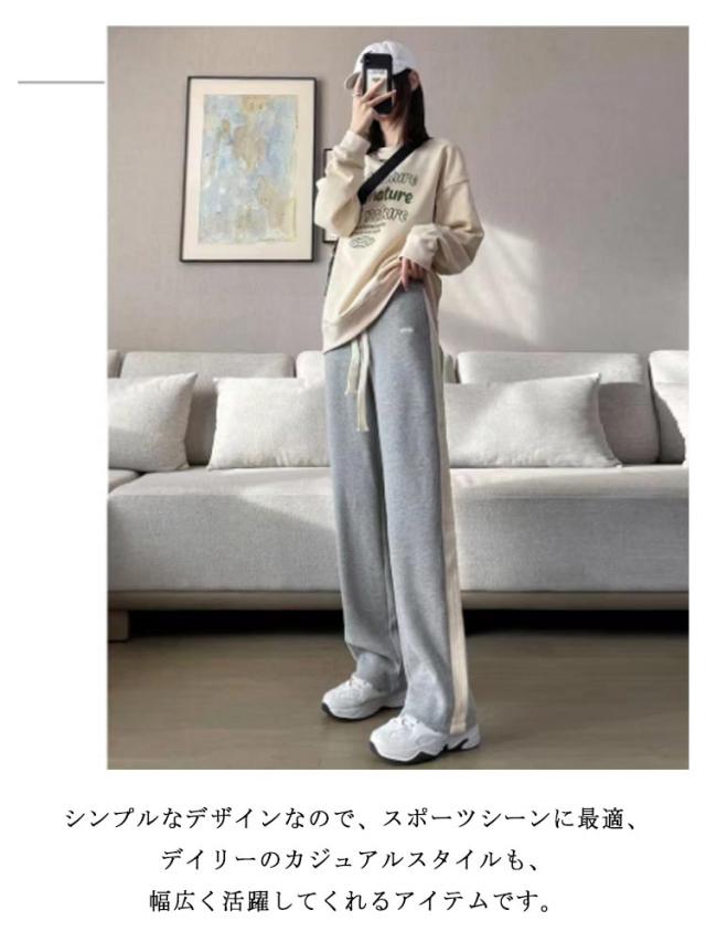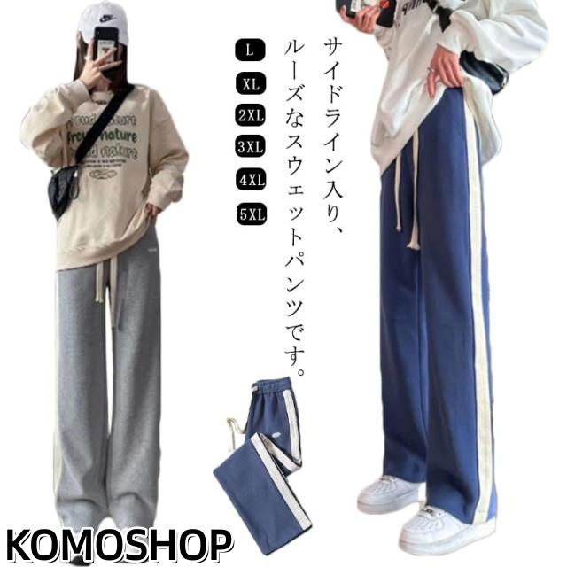 送料無料 スウェットパンツ レディース サイドライン入り ワイドパンツ ジョガーパンツ ロングパンツ ハイウェスト トレーニング 着?せ おしゃれ きれいめ 秋冬 カジュアル L XL 2XL 3XL 4XL 5XL