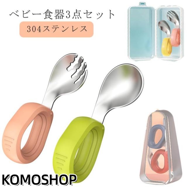 ベビー食器 スプーン フォーク ケース付き 3点セット 離乳食器 スプーン ベビースプーン 子供用スプーン 曲げスプーン 1歳 幼児用 練習用 食事補助 握りやすい 食器 自分 左手 右手 知育カトラリー 赤ちゃん ベビー キッズ 子供 女の子 男の子 出産祝い 可愛い プレゼント