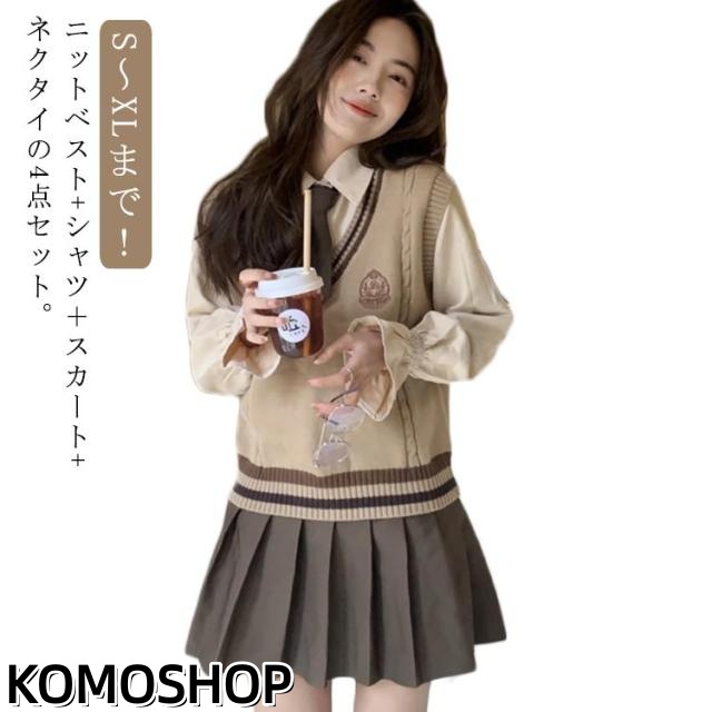 女子高生 制服 4点セット JK制服 女子高校生 制服 コスプレ スカート 長袖 シャツ ボリューム袖 ニットベスト 学生服 大人 レディース 女子高生 制服コスプレ セットアップ 可愛い 学園祭 文化祭 衣装 仮装 コスチューム 【送料無料】