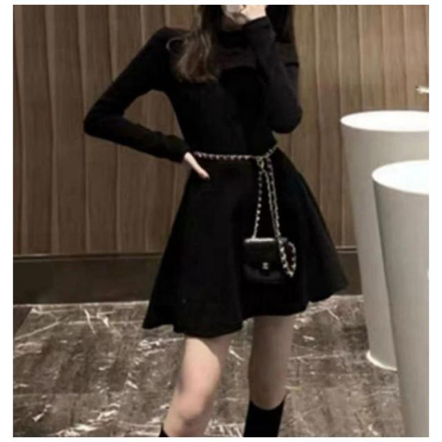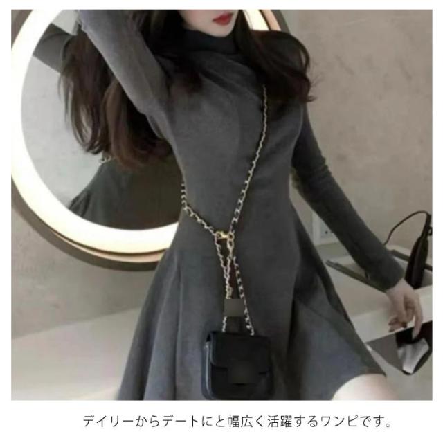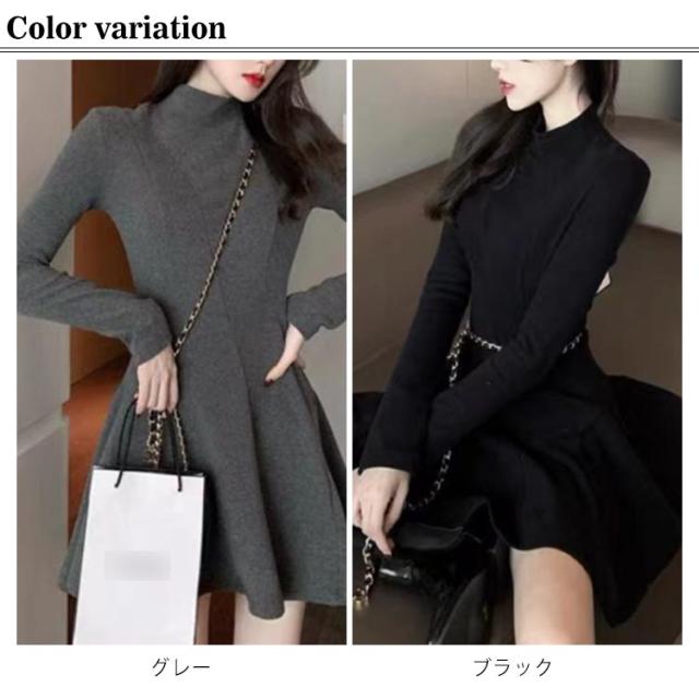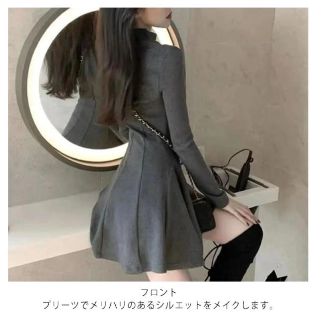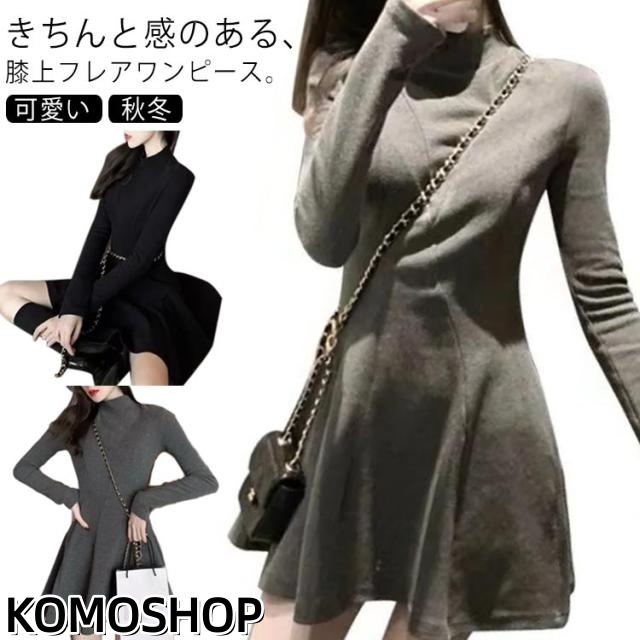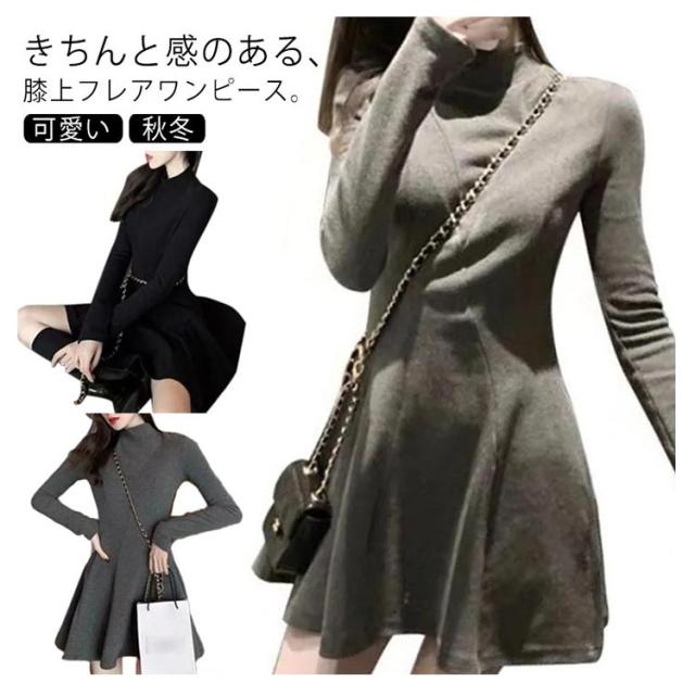 レディース 膝上 二の腕カバー インナーワンピース 秋冬 フレア プリーツ ワンピース 長袖 ワンピース フレアワンピース ハーフネック 春 ミニ ミニ丈 スリム シンプル 可愛い