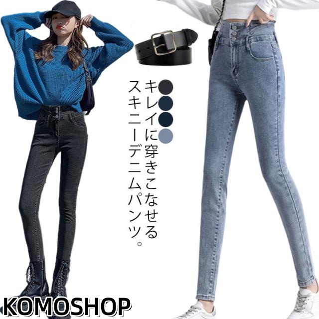 デニムパンツ ハイウエスト スキニーパンツ ベルト付き レディース ストレッチ スキニーデニム パンツ ジーンズ ジーパン 春秋 女性用 伸縮性 きれいめ 大人 コーデ 細身 美脚見せ カジュアル