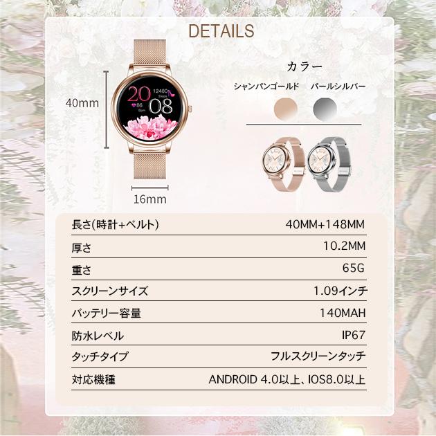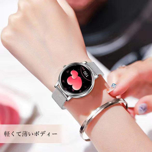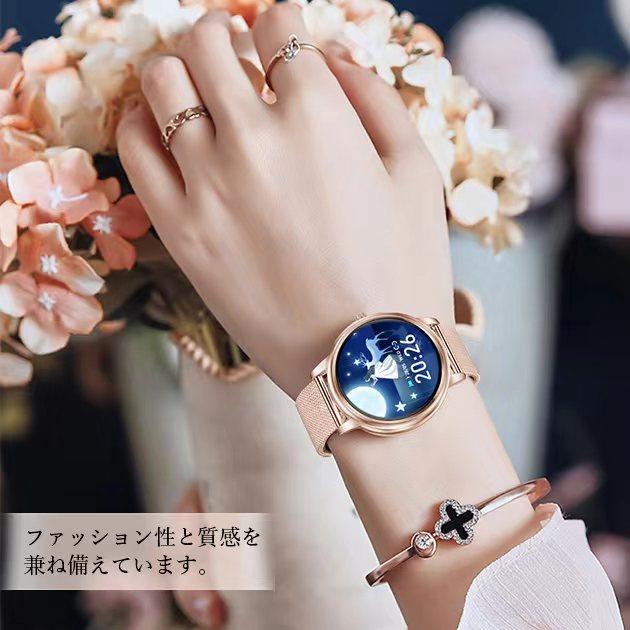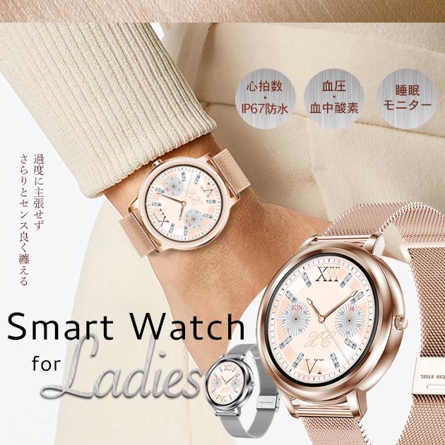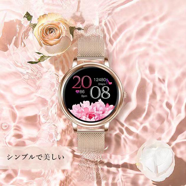 スマートウォッチ レディース 丸型 小さめ 2025 血圧測定 スマートウォッチ 日本製センサー 体温 血圧 女性用 血圧計 万歩計 腕時計 歩数計