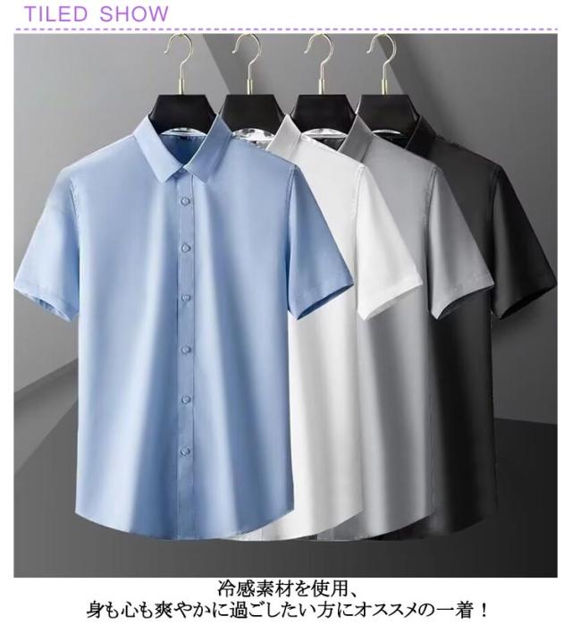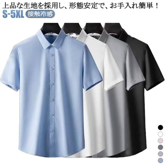 学校や職場で大活躍するワイシャツ 冷感ワイシャツ 半袖 フォーマル ビジネスシャツ 通勤 ストレッチ シャツ 面接 yシャツ 大きいサイズ ひんやり 夏 シャツ 春夏 アイスシルク お葬式 結婚式 仕事 黒 白 青 ピンク 浅い灰 濃い灰