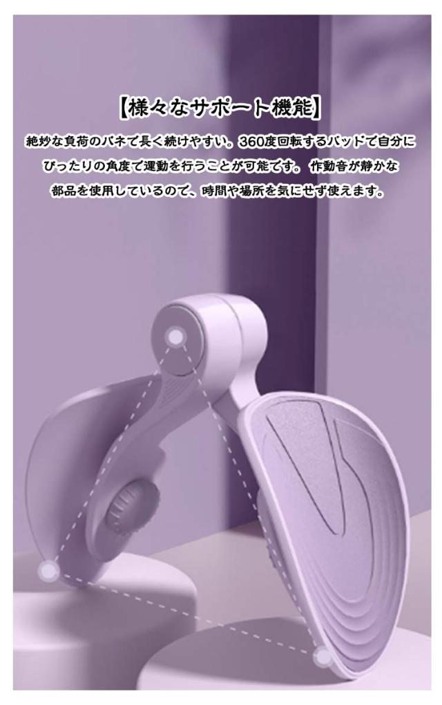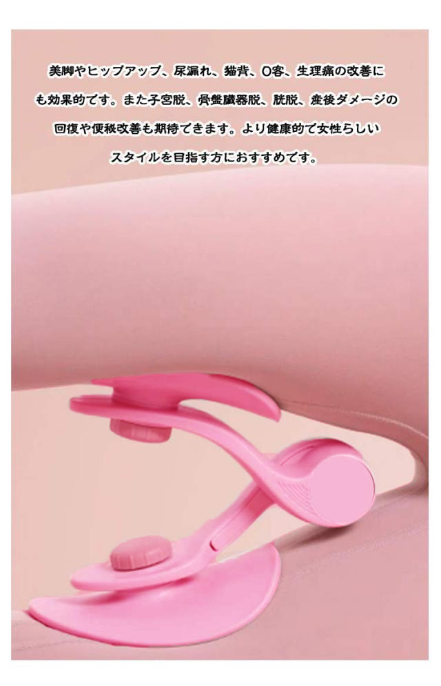 | 【多機能トレーニング】内転筋トレーニングと骨盤底筋トレーニングで、血液循環を促進することができ、太もも、腰、下腹部の筋肉を両方同時に鍛えられます。 美脚やヒップアップ、尿漏れ、猫背、O客、生理痛の改善にも効果的です。また子宮脱、骨盤臓器脱、胱脱、産後ダメージの回復や便秘改善も期待できます。より健康的で女性らしいスタイルを目指す方におすすめです。 【耐久性に優れた素材】上質なABS+TPE素材を使用しています。柔軟性と耐久性に優れた上質なシリコンゴムを採用。肌あたりの良いゴムと広い接地面で、肌への負担を軽減します。 【様々なサポート機能】絶妙な負荷のバネで長く続けやすい。360度回転するパッドで自分にぴったりの角度で運動を行うことが可能です。 作動音が静かな部品を使用しているので、時間や場所を気にせず使えます。 | |