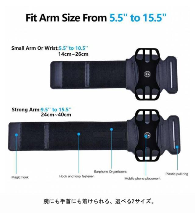 | 時代は、腕にスマホ!便利なアームバンド。腕や手首にスマホを取り付けられるアームベルトが登場! 両手をすっきり空けて運動に集中できます。 歩数など日々の運動をスマホに記録するのにも便利です。 360度回転できるので操作ラクラク! 取り付けカンタン!4.5〜7.0インチのあらゆるスマホサイズに対応! 鍵、カード、現金の収納も!ミニポケット付き! 音楽を聴きながら♪イヤホンコードがまとまる結束ベルト。 汗かきさんに嬉しい!蒸れにくい優れた通気性! 汗をかいても安心!手洗いでお手入れ可! 腕にも手首にも着けられる、選べる2サイズ。 運動時に必要なものだけ、スマートに携帯。 優れた機能性と使いやすさで、大人の日常に寄り添います。 男女問わず着用できるので、ご家族やご友人とおそろいにしても。 日々の運動に、お散歩に、スポーツに、レジャーに、いろいろ使える便利アイテムです。 | |