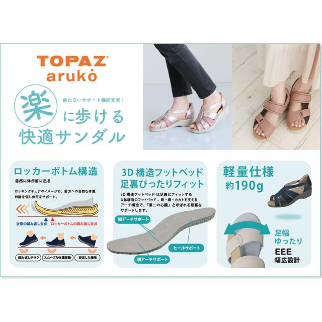 3E 幅広 ワイド トパーズ レディース トパーズアルコ TOPAZ aruko サンダル 靴 シューズ コンフォート ブラック 黒 グレー ピンク ゴールド 灰色 送料無料 TOPAZ 2335A