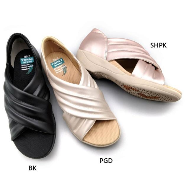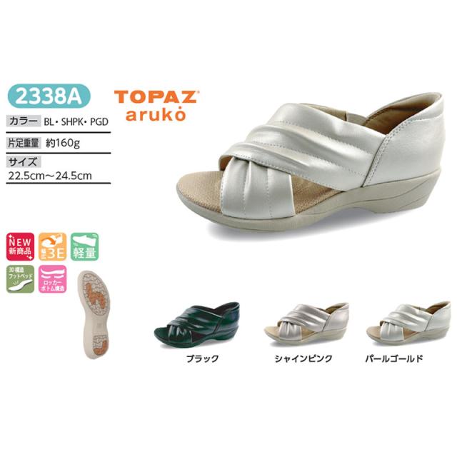 3E 幅広 ワイド トパーズ レディース トパーズアルコ TOPAZ aruko サンダル 靴 シューズ コンフォート 3D構造 柔らかい 歩きやすい 軽量 抗菌 防臭 ブラック 黒 ピンク ゴールド 送料無料 TOPAZ 2338A