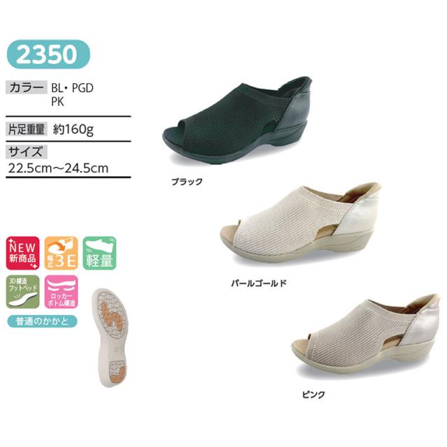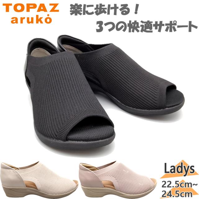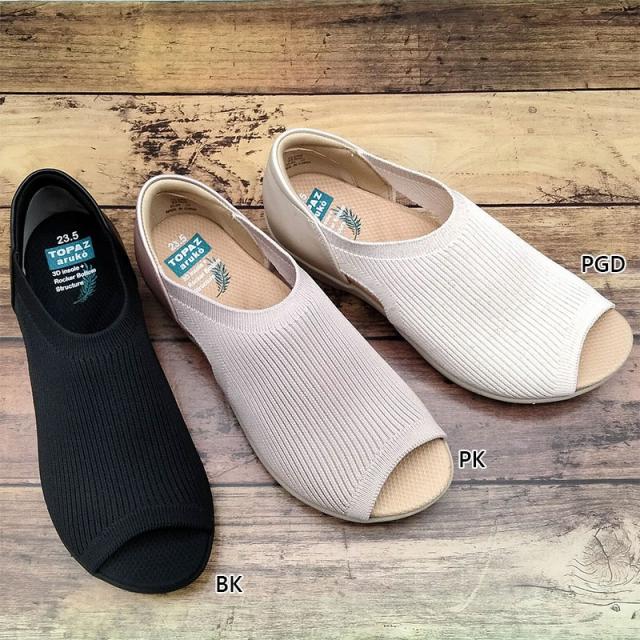 3E 幅広 ワイド トパーズ レディース トパーズアルコ TOPAZ aruko サンダル 靴 シューズ コンフォート 3D構造 柔らかい 歩きやすい 軽量 抗菌 防臭 ブラック 黒 ピンク ゴールド 送料無料 TOPAZ 2350