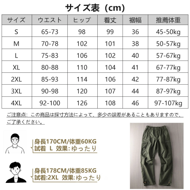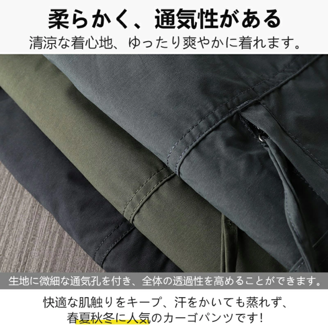 [ゆったりカーゴパンツ] ゆったりしたデザインなので、窮屈感が全然なくて、動きやすく、シルエットラインがカジュアルなワイドパンツ雰囲気を演出します。カーキ、グリーン、ブラックの定番カラーを肌馴染みよく美しく見えるように厳選します。