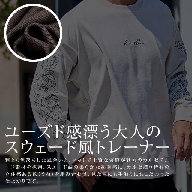 トレーナー メンズ おしゃれ スウェード スエード カルゼ スウェット スエット 刺繍 ロゴ 花柄 クルーネック大きいサイズ オーバーサイズ プルオーバー シンプル 大人 20代 30代 40代 50代 ちょいワル ユニセックス 男性 男 服 秋 冬 秋冬 ファッション [5477-3656]