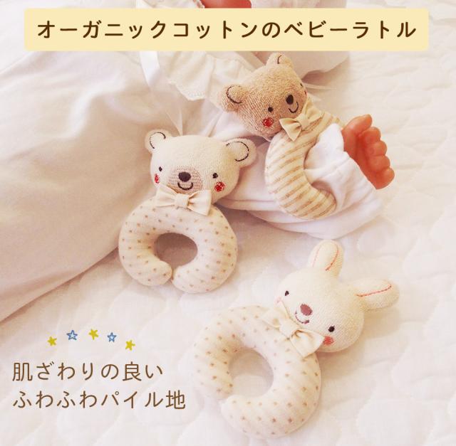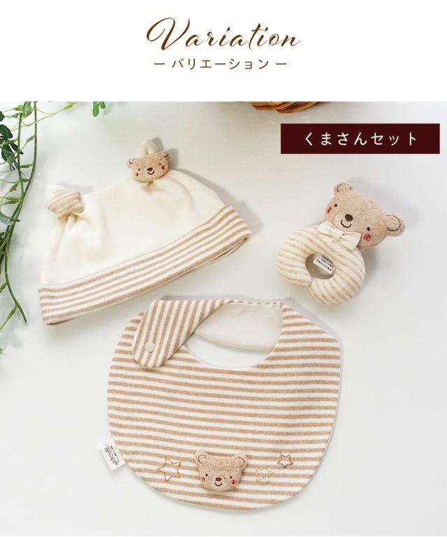 ベビーラトル よだれかけ お帽子のオーガニックコットン 3点セット 日本製 アモローサマンマ Amorosamamma くま 男の子 新生児 赤ちゃん ギフト プレゼント 御祝 出産祝い ベビーギフト ベビー用品 カバーオール 兼用ドレス スタイ 送料無料 送料込み