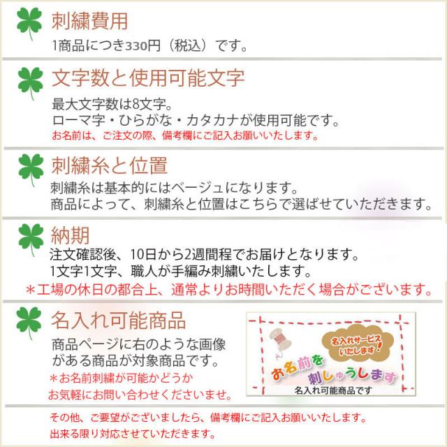 【名入れ刺繍可】以外の商品でも、名入れが可能なものもございます。