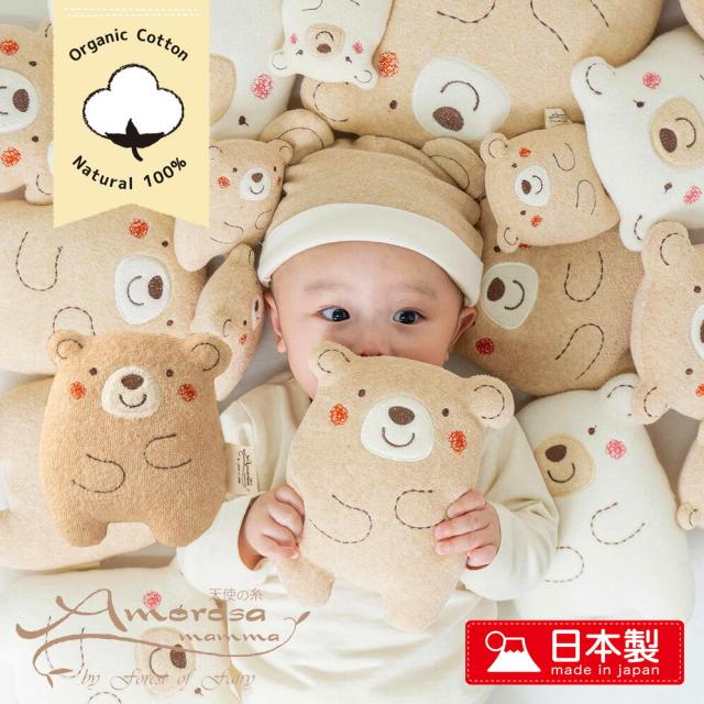 日本製 【サイズS】 オーガニックコットン 10×8センチ 大型ベビーラトル くまのコットンシリーズ にぎにぎ人形 鈴入り ベビー 新生児用 おもちゃ ぬいぐるみ ファーストトイ ニギニギ 御祝 出産祝い ギフト アモローサマンマ amorosa mamma