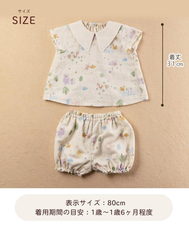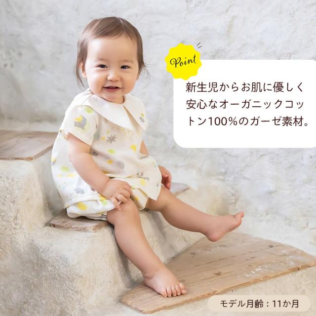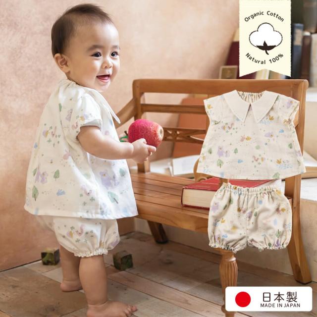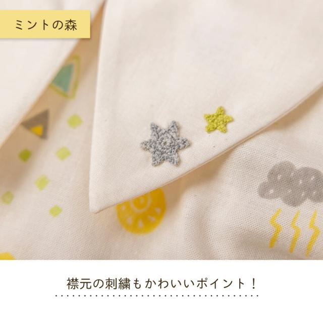 夏物素材 オーガニックコットン製品 ベビー用セットアップ 日本製 夢みる森ミントの森 Wガーゼ お誕生日 撮影 新生児 赤ちゃん ベビー服 ご出産祝い お出かけ用