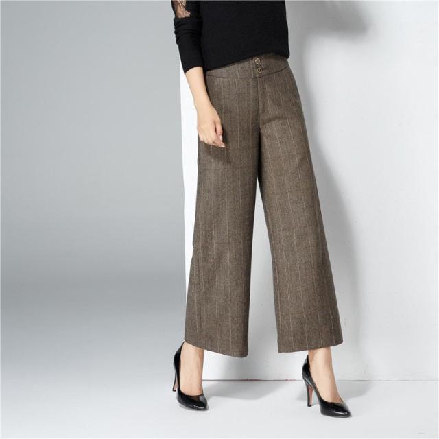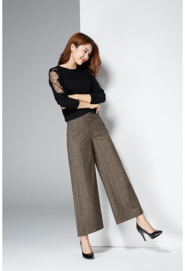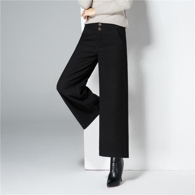 ガウチョパンツ レディース 秋冬 ワイドパンツ 九分丈 スカーチョ ハイウエスト 美脚 着やせ 体型カバー 大きサイズ ラシャ 50代 40代