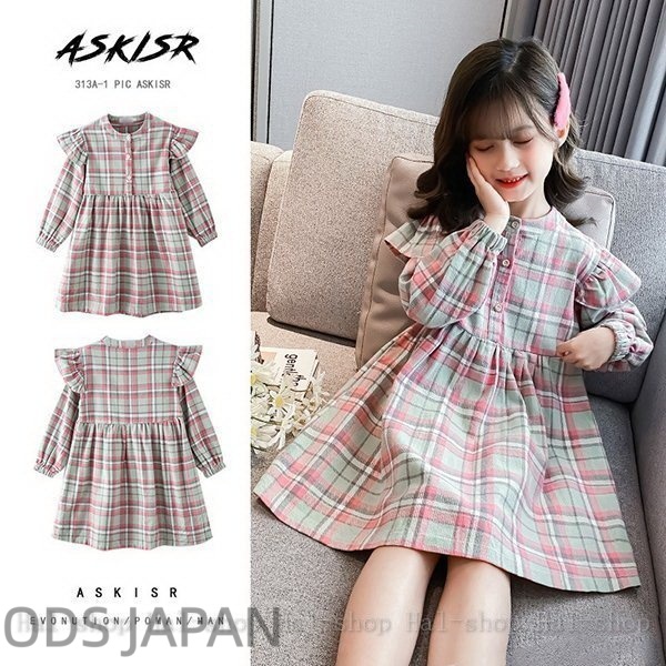 キッズ 長袖 ワンピース 子供服 春秋 キッズワンピース 長袖ワンピース チェック柄 子供ドレス お姫様 ジュニア おしゃれ 可愛い カジュアル 小学生 新品