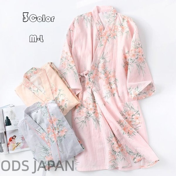 2重ガーゼ バスローブ 花柄 綿 バスローブレディース パジャマ 薄手浴衣 バスローブ ガウン ルームウェア 寝巻き風呂