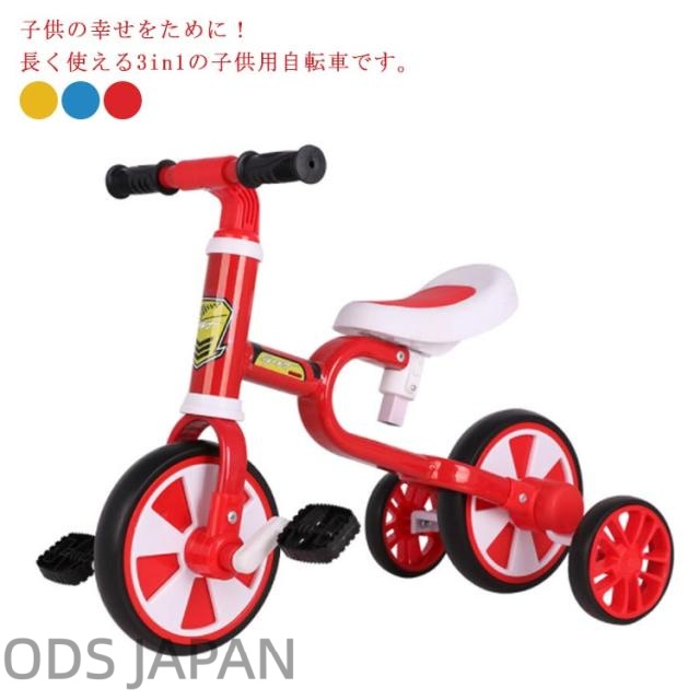| 子供の幸せをために!長く使える3in1の子供用自転車です。 子供のバランス感を鍛えながら、自信も高められて、自転車乗りに役立つ。 三輪車・バランスバイク・二輪車の3タイプに変身できます。 タイヤの表面に滑り止めデザインがあり、あらゆる種類の地面に適しています。 安定な三角形の構造設計、転びなどが避けられ、安全と安心感が満々。 柔らかな座りなので、、衝撃減少に効果があり、乗るときはとても快適です。 工具なしで簡単に変身できるので、女性にとっても簡単である。 | |