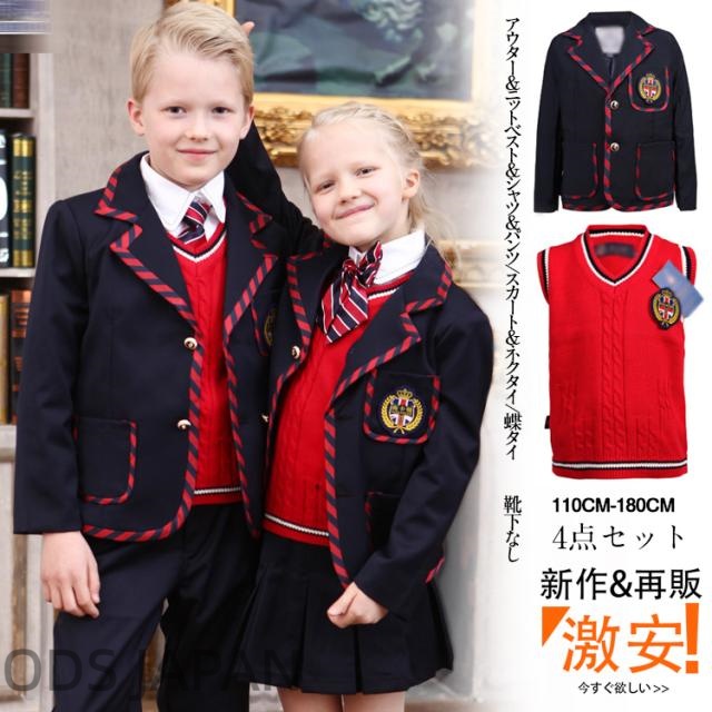 送料無料小学生制服 卒業式 子供スーツ ジャケット 学園 スクール ユニホーム 小学校 卒業式 入学式 発表会 イングランド 5点セット ユニ