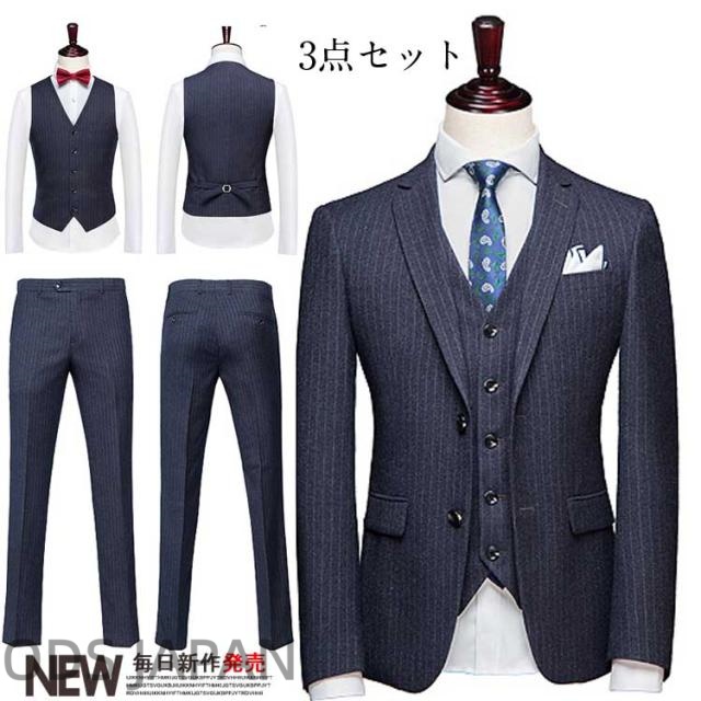 3ピーススーツ スリーピーススーツ メンズ スーツ スリム 細身 ビジネス スーツセット セットアップ 入学式 結婚式 二次会 卒業式