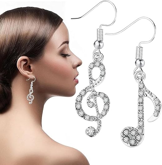 ペア 音符タイプ ピアス ★ レディース ジュエリー ラインストーン ピアス 可愛い イヤリング 両耳用オシャレ アクセサリー 銀 K22-3