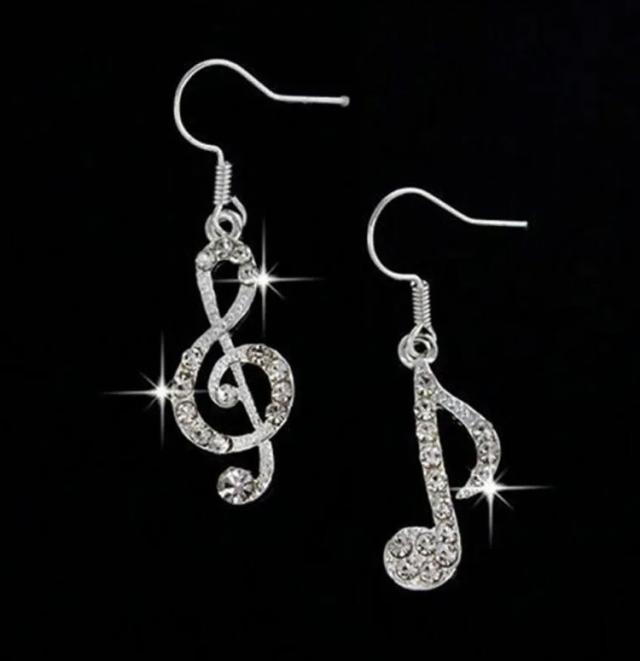 ペア 音符タイプ ピアス ★ レディース ジュエリー ラインストーン ピアス 可愛い イヤリング 両耳用オシャレ アクセサリー 銀 K22-5
