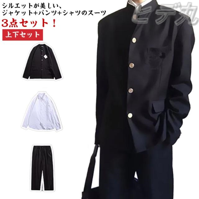 上下セット スクール 制服 学生服 学ラン ジャケット 男の子 コスプレ 詰襟 ボーイズ ズボン 男子 セット 通学 中学生 ウエストゴム 黒 高校生 コスプレ衣装 学生服 入学式 卒業式 ジュニア