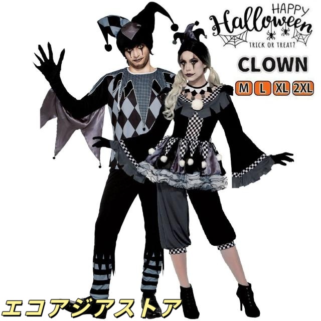 ハロウィン ピエロ コスプレ衣装 大人 仮装 ジョーカー サーカス 悪魔 デビル カップルお揃い 面白い コスチューム マジシャン ピエロ衣装 男性用 女性用 キャラ