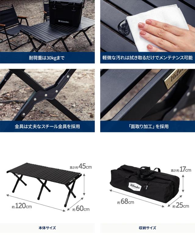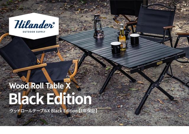 ハイランダー アウトドアテーブル ウッドロールテーブルX Black Edition アウトドア キャンプ ローテーブル 天然木 60 ブラック