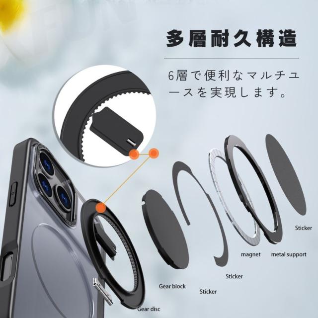 iPhone 17 ケース 360度 リングスタンド magsafe充電 iphone 17pro ケース クリア magsafe iphone17ケース リング付き iphone 17 air ケース 薄型 iphone 17 pro ケース スタンド iphone 17 Pro max ケース おしゃれ シンプル カメラレンズ保護 スモーク 半透明