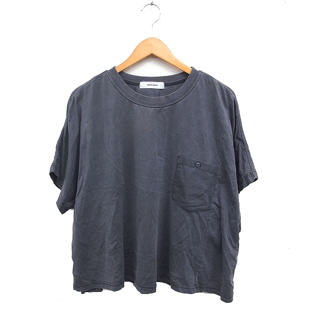 【中古】スーパーハッカ SUPER HAKKA ワイド Tシャツ カットソー 素材切替 レース 無地 コットン 綿 グレー 灰 /FT43