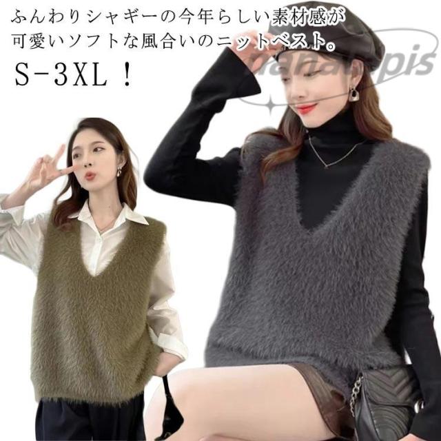 Vネック シャギーニット ニットベスト レディース モヘア シャギーニットベスト ニット きれいめ レイヤード ニットベスト 秋冬 セーター ジレ 毛