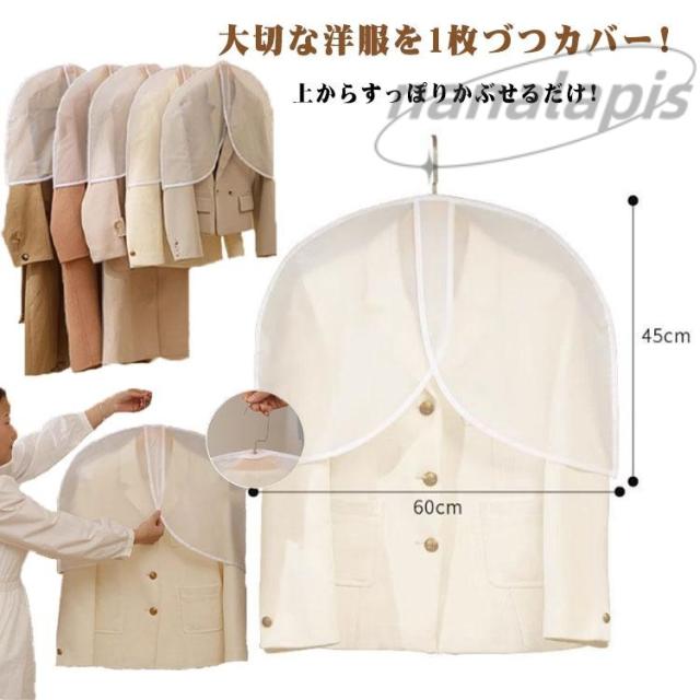 洋服カバー ハーフサイズ 衣類収納袋 防塵 衣類カバー ショート丈 ホコリ除け 洋服カバー 10枚組 半透明 コート スーツカバー ダストカバー 型崩