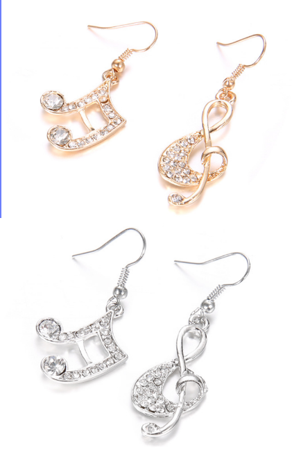 ペア 音符タイプ ピアス ★ レディース ジュエリー ラインストーン ピアス 可愛い イヤリング 両耳用オシャレ アクセサリー 金 銀 B08-4