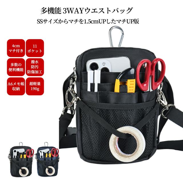 多機能 ウエストポーチ ナースポーチ ウエストバッグ SSサイズ マチUP版 ダブルジッパー 仕事用 11ポケット マチ付き 3wayショルダー 文具 工具 小物入れ 作業用 業務用 仕事用 事務 看護 介護 腰袋 ベルト付き 撥水 防傷加工