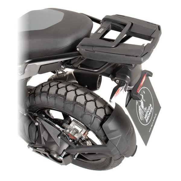 特記事項:ヘプコ&ベッカートップケースを装着するためのキャリア。トップケースを積載していない時はガイド部分を折り畳みフラットに出来るので、ケースを装着しないときもスタイリッシュです。ユニバーサルプラスチックアダプタプレート付きのトップケース、オービット/エクスクルーシブ トップケース取付適合不可。