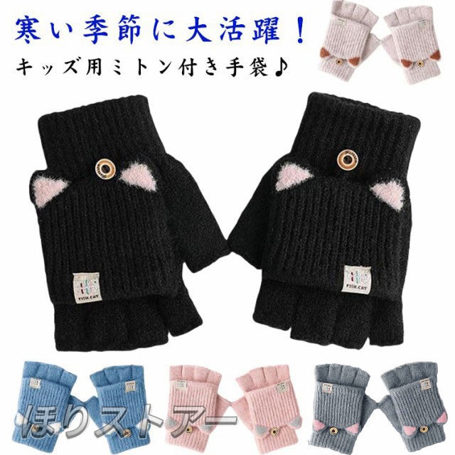 ニット手袋 防寒対策 キッズ 裏ボア 2way 手袋 手ぶくろ 可愛い 雪遊び 女の子 ニット手袋 ミトン こども 指なし手袋 小学生 おしゃれ スマホ対応 子ども 子供 小学校 あったか 暖かい 低学年 防寒 もこもこ 男の子 冬 ギフト プレゼント